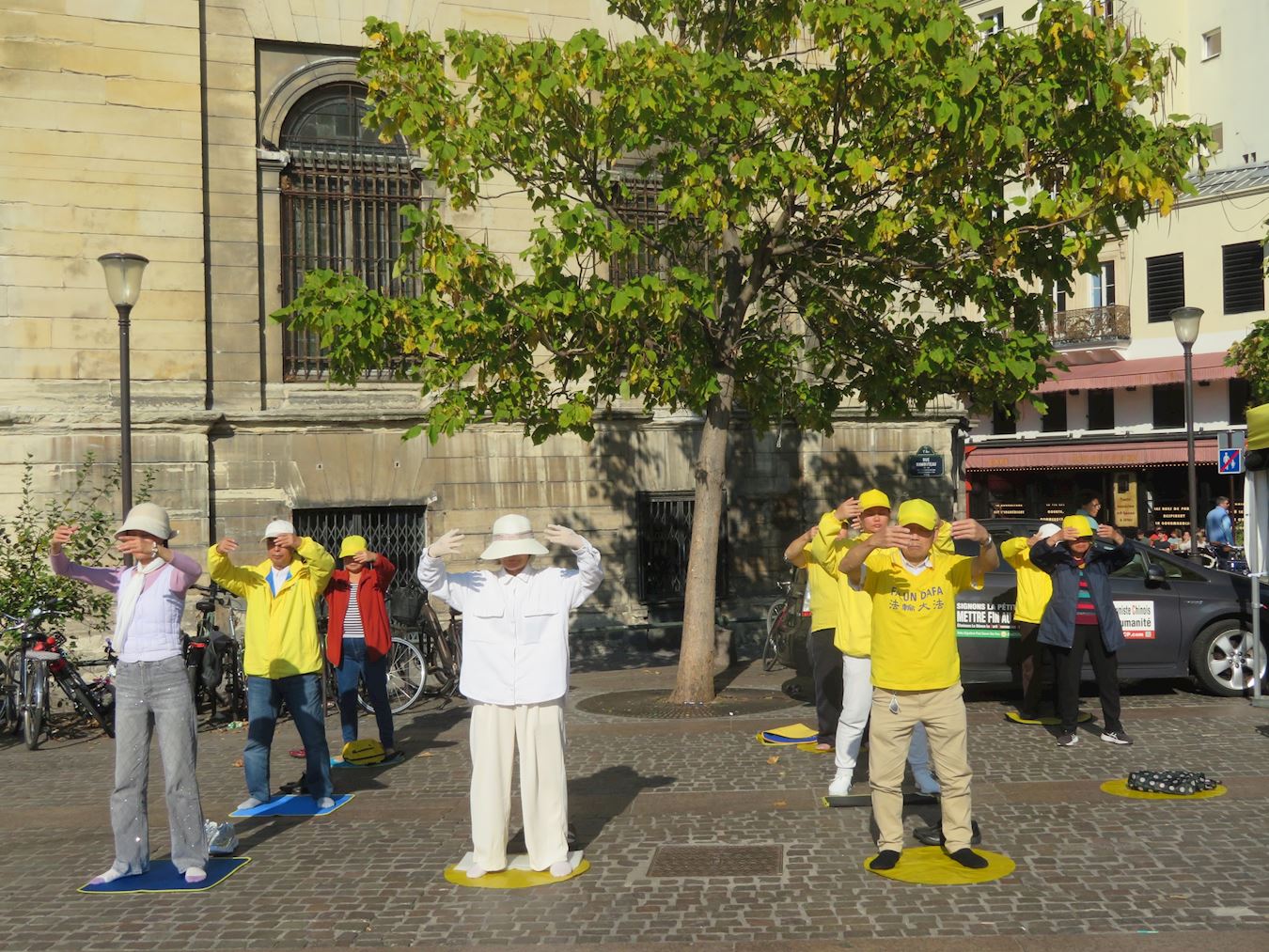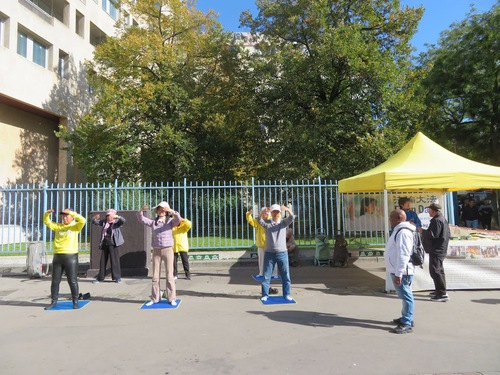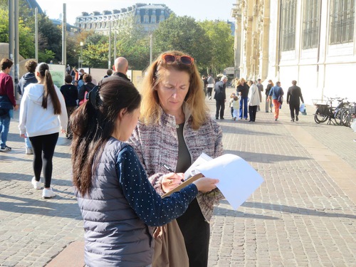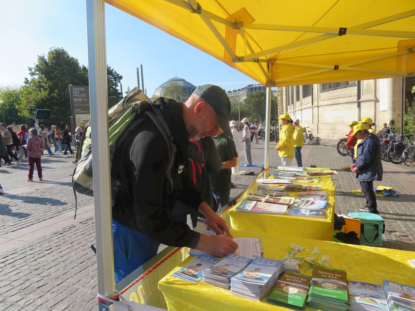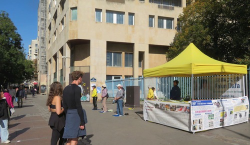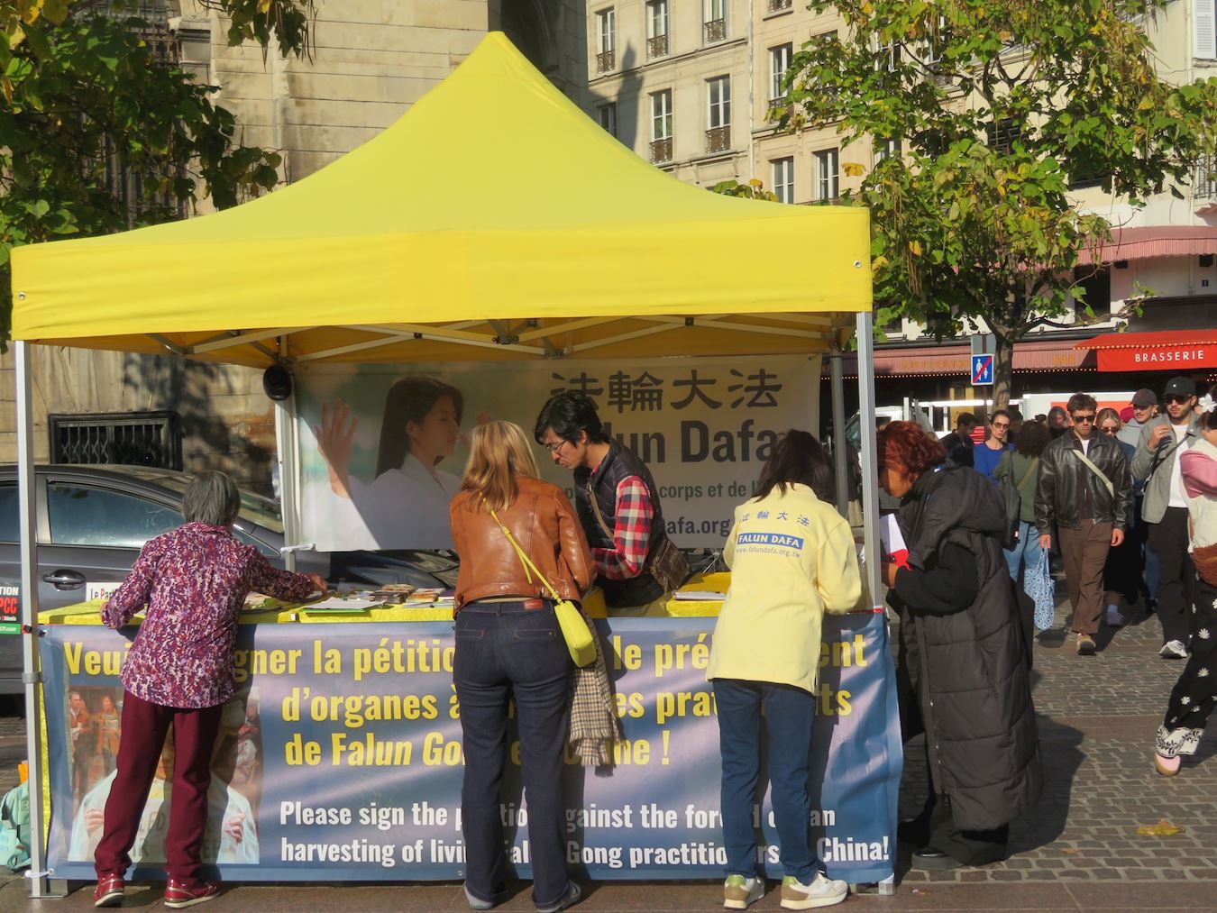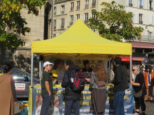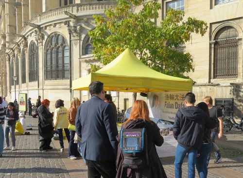 Ils ont présenté les exercices lors de l'événement au Châtelet le 11 octobre, et de nombreuses personnes se sont arrêtées pour les regarder. Nombre d'entre eux souhaitaient apprendre la pratique et ont noté les coordonnées des sites de pratique à Paris. Après avoir entendu parler du Falun Dafa et des prélèvements forcés d'organes sur des prisonniers d'opinion (dont la majorité sont des pratiquants de Falun Dafa) perpétrés par l'État, les gens ont exprimé leur indignation et signé une pétition appelant à la fin de la persécution.