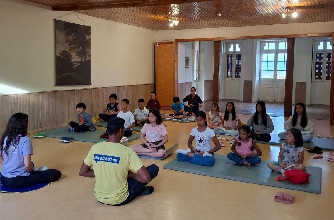Chaque jour, les jeunes faisaient les exercices ensemble et lisaient les enseignements du Falun Dafa en différentes langues, tandis que les moniteurs guidaient ceux qui étaient encore trop jeunes pour lire.