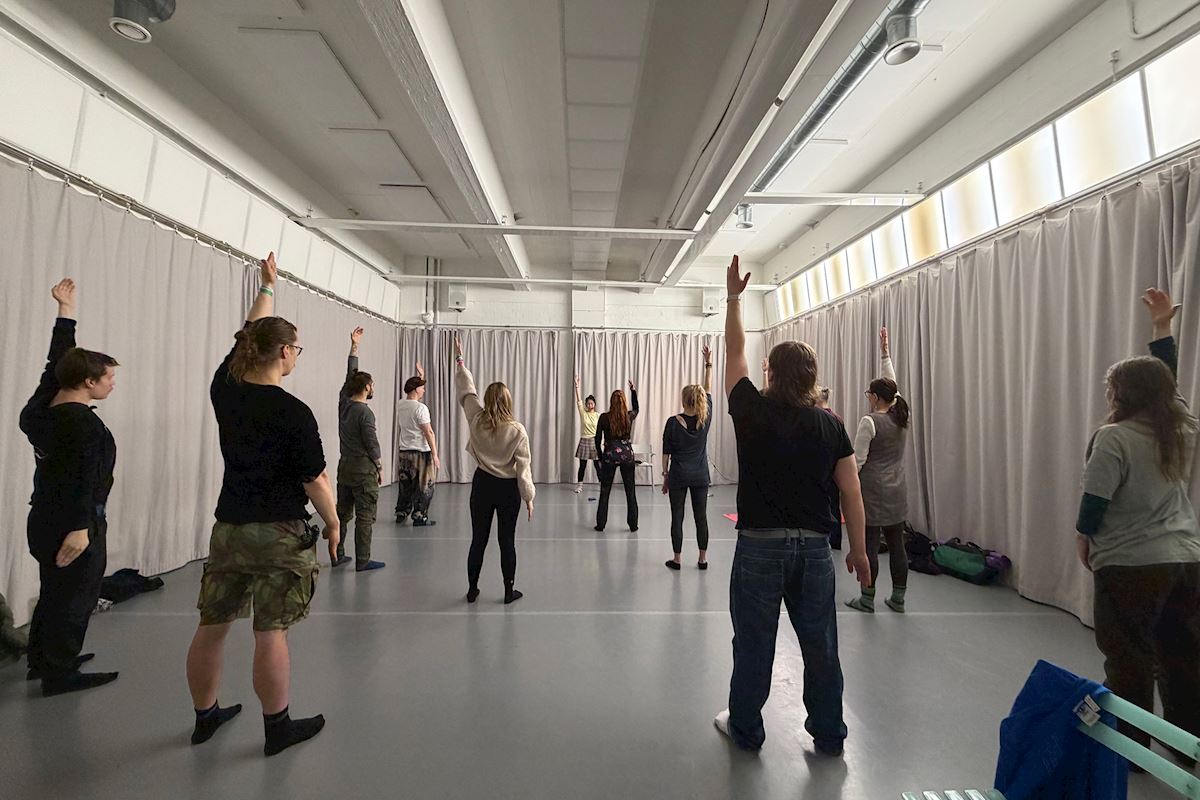 Heikki (deuxième à partir de la droite) et ses amis apprennent les exercices