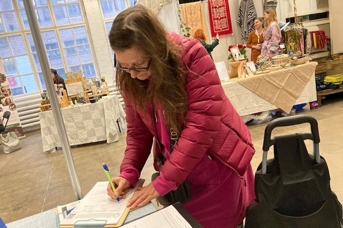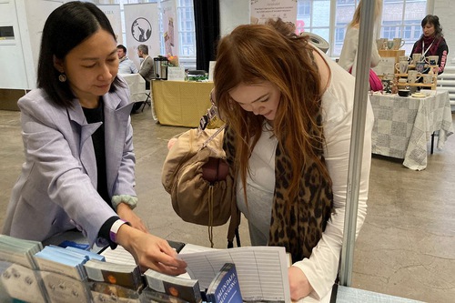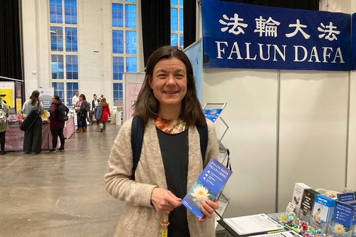 Nina et son amie, assises au stand voisin, ont signé la pétition après avoir entendu parler de la persécution du PCC. Pendant qu'elles assistaient à une démonstration des exercices, une pratiquante a invité l'ami de Nina à se joindre à elles. Il a accepté. Lorsqu'il a décrit à Nina ce qu'il ressentait en pratiquant les exercices, elle a décidé de les essayer elle aussi et s'est dite ensuite très touchée. Elles ont acheté un exemplaire de Falun Gong .