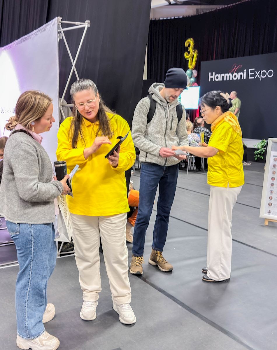 Des pratiquants de Falun Dafa ont participé à l'exposition Harmoni à Solna les 28 et 29 mars 2026.