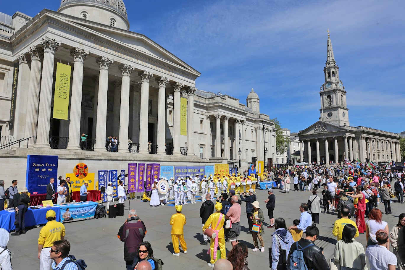Le 25 avril 2026, les pratiquants ont organisé des actions sur Trafalgar Square et informé la population des persécutions en Chine.