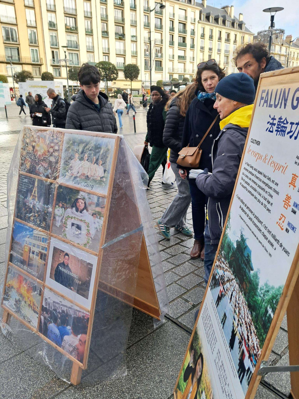 Place Alphonse Fiquet à Amiens, Place de l'Ecluse à Nantes ou Place de la Bastille à Paris des gens profondément émus saluent le principe de Vérité-Bonté-Tolérance, admirent le courage des pratiquants et signent pour faire cesser les atrocités commises par le PCC contre des innocents ... -