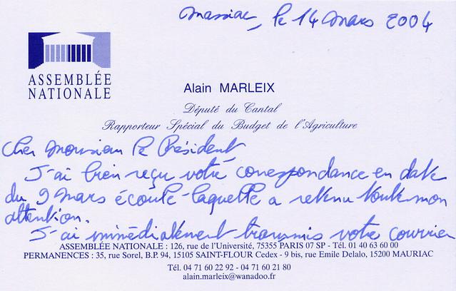 La célébration du nouvel an chinois à Paris en février dernier a été marquée par le harcèlement de pratiquants de Falun Gong par la police française sous la pression du gouvernement chinois. Un pratiquant a écrit au député de sa localité, M. Alain Marleix, qui dans sa réponse suggérait qu’une enquête soit faire sur l’incident. Marleix a fait suivre la lettre au président de l’UMP, son parti politique. Il a également exprimé ses inquiétudes aux différents départements concernés. -