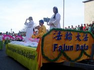 Le 17 mars, les pratiquants de Falun Gong d'Irlande ont participé au défilé du Jour de la Saint Patrick à Galway en Irlande. La section du Falun Gong consistait en un char, sur lequel trois pratiquants occidentaux faisaient la démonstration des exercices, d'une équipe de danseuses à l'éventail et de percussionnistes dans le style Tang. Les spectateurs les ont chaleureusement applaudis. -