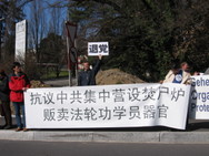 “Démissionnez du PCC, démissionnez du PCC et démissionnez du PCC le plus vite possible!” On entendait ce slogan en français, en anglais et en chinois dans les rues du centre ville de Genève jusqu’à la Place des Nations Unies. Le 4 avril 2006 plus de cinq cent personnes de différents pays se sont jointes au rassemblement organisé par le journal Epoch Times et ont manifesté contre les atrocités du camp de concentration de Sujiatun établi par le régime communiste chinois le défilé entendait aussi soutenir les neuf millions de personnes qui ont démissionné du Parti communiste chinois. -