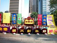 Le matin du 1er janvier 2008, les pratiquants de Falun Dafa de différents pays, et les pratiquants de Hong Kong qui avaient assisté à la Conférence de partage d'expériences de Falun Dafa de Honk-Kong-Région Asie-Pacifique, ont participé à une activité de quatre jours. Ils se sont rassemblés à Charter Garden pour souhaiter respectueusement une Heureuse Nouvelle année au Grand Maître compatissant. -